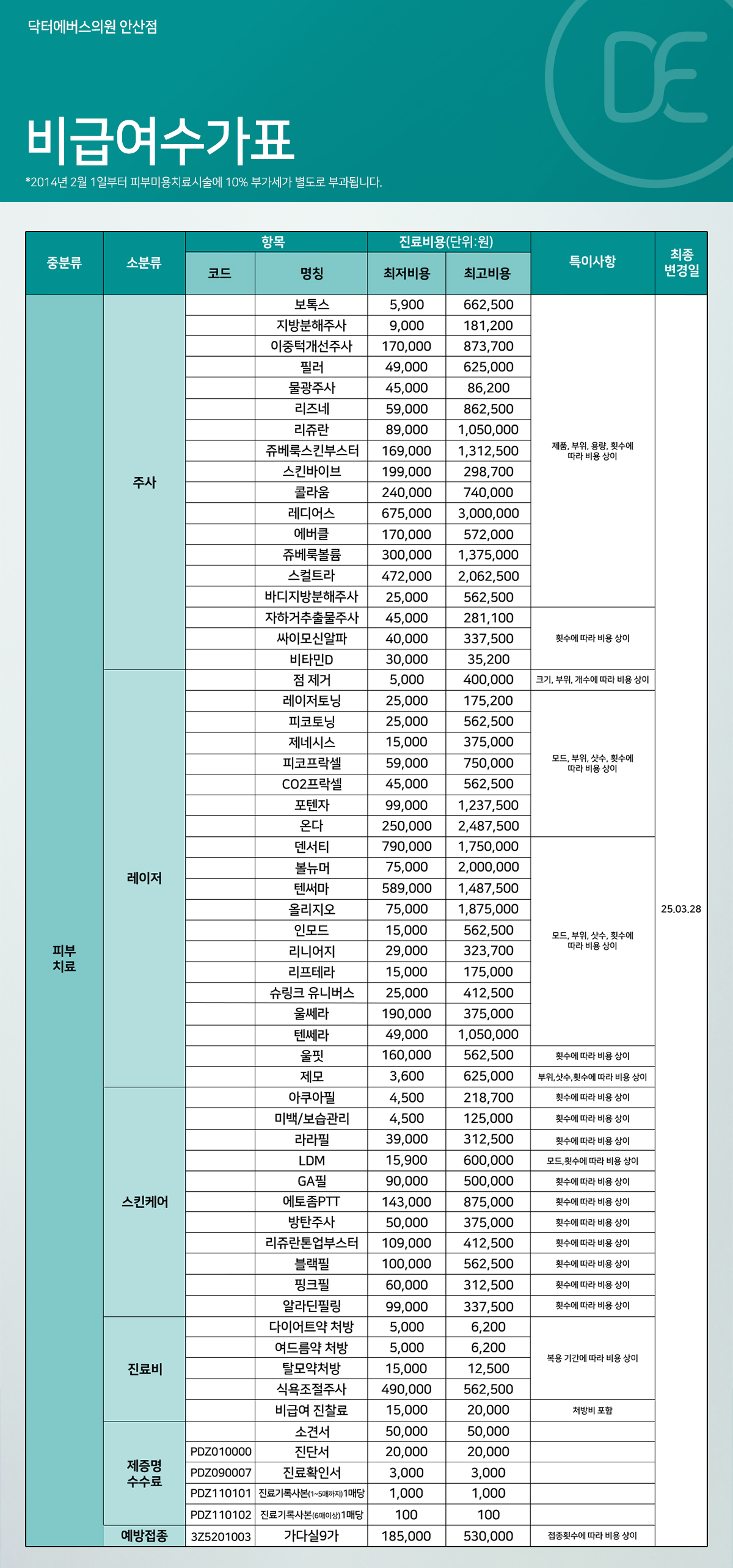 비급여수가표